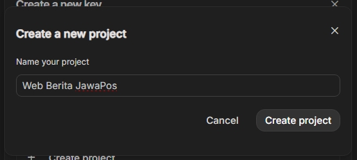Buat Proyek Baru (Jika Diperlukan) API Key Anda perlu terhubung dengan sebuah proyek di Google Cloud. Isikan nama Project Anda, misal: Web Berita JawaPos
