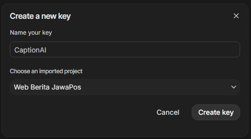 PENTING: Simpan kunci ini di tempat yang aman dan jangan pernah membagikannya secara publik. Siapa pun yang memiliki kunci Anda dapat menggunakan layanan AI atas nama Anda.