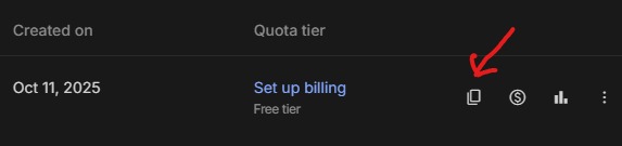 Klik ikon salin (copy) untuk menyalin kunci tersebut.